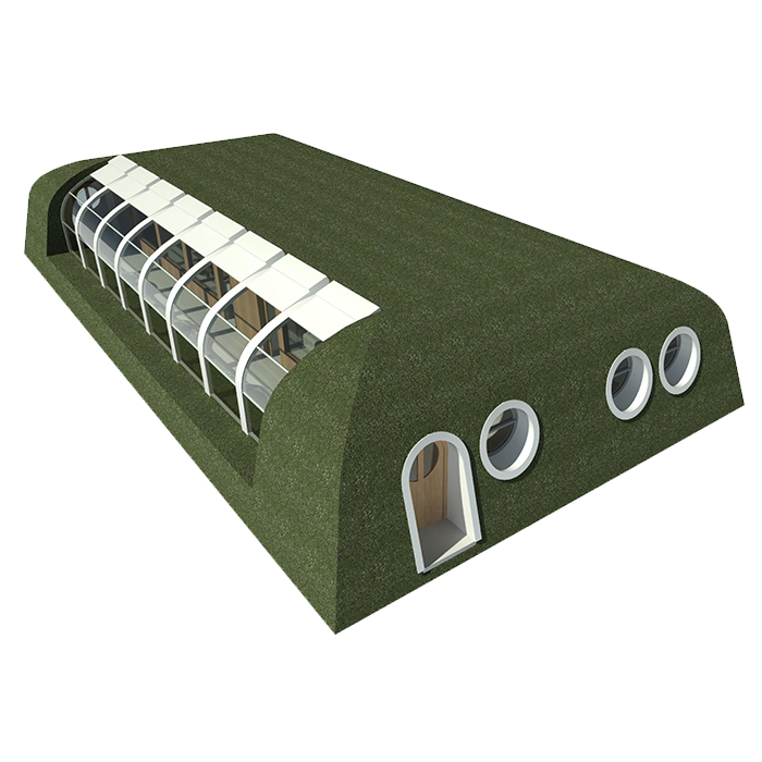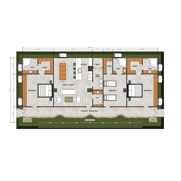 Panels for a EARTHSHIP house with 2 Master Bedrooms each w / own Bathroom and Dresser plus one other generous bedroom with its own bathroom, 3 1/2 bathrooms total, Kitchen, Living and Dining, with generous solarium / greenhouse.